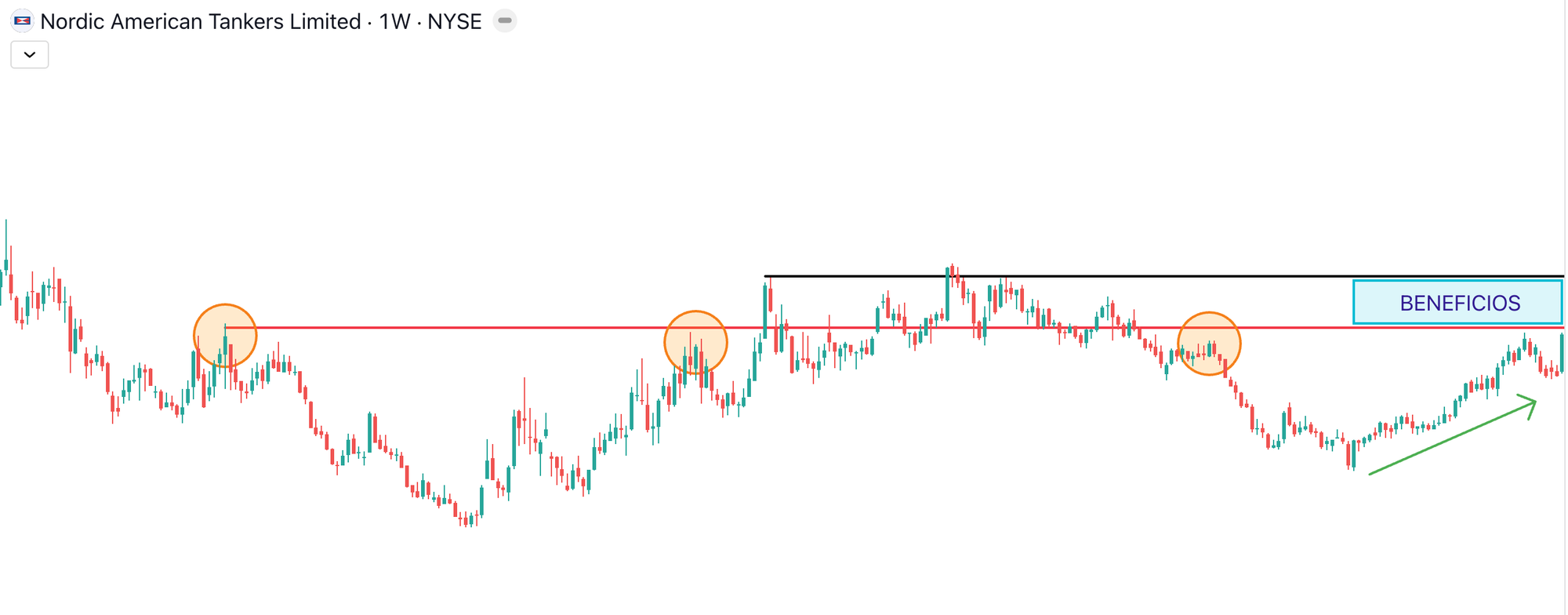 - Escenario Petrolero Alcista: Si el precio del petróleo sube debido a tensiones geopolíticas o recortes de producción, el sector energético al completo experimenta una entrada de flujo institucional. NAT, por correlación intrínseca, se ve arrastrada por este optimismo sectorial, revalorizando su cotización junto al resto de players de la industria.